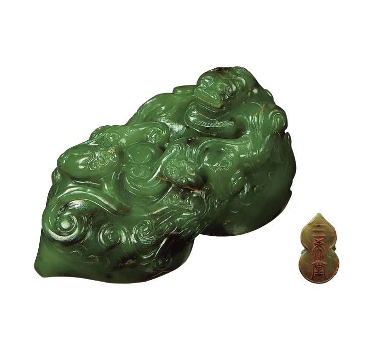 1清乾隆〈御製碧玉「三希堂」葫蘆形寶璽〉