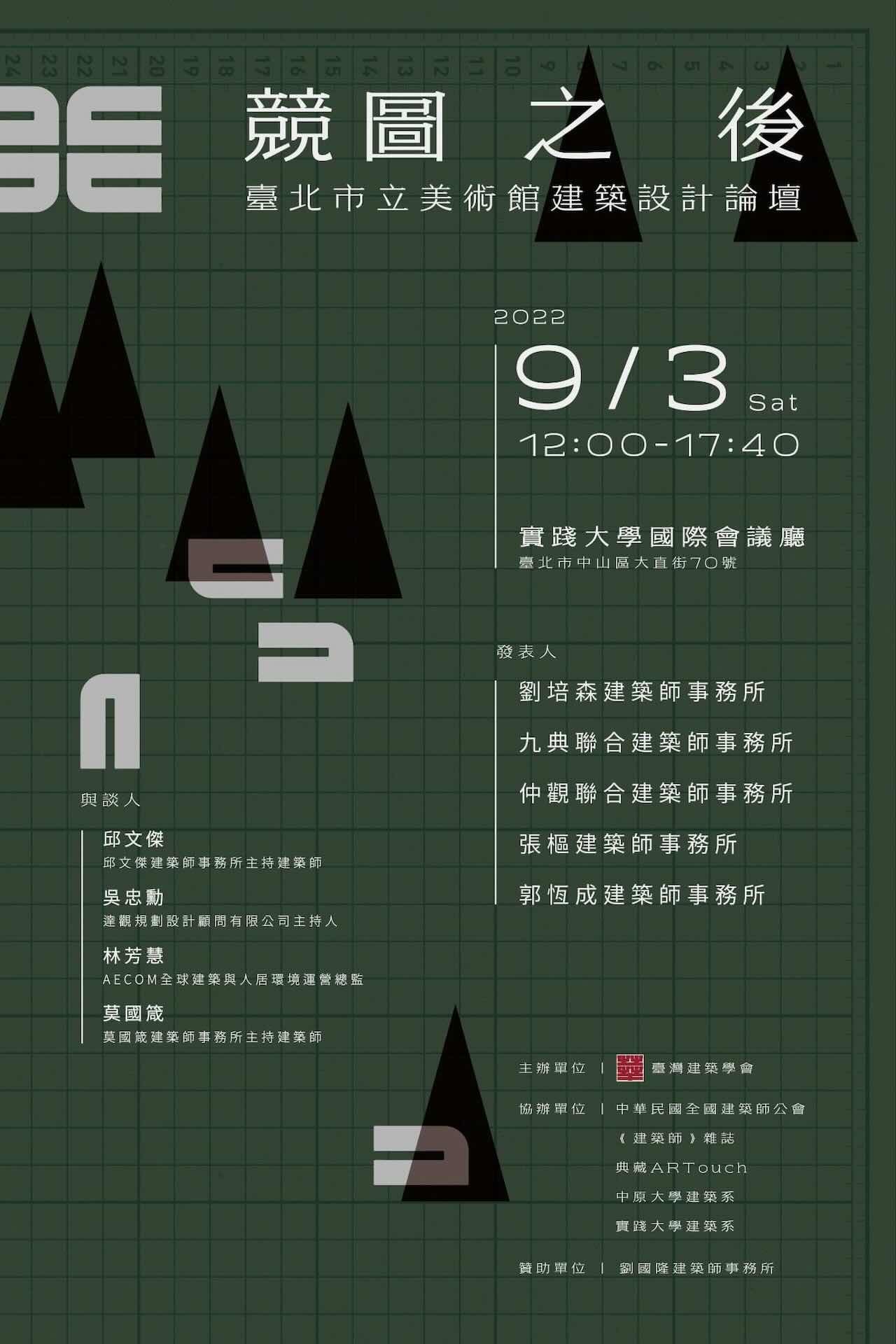 為了打開國內各大競圖機制的公共性,並創造公民參與檢視制度的空間,繼8月21日由臺北市立美術館(簡稱北美館)所主辦的「預見北美2.0」座談會後,臺灣建築學會就此備受關注的北美館擴建統包案(簡稱「北美館擴建案」),於本(9)月3日進行「競圖之後:臺北市立美術館建築設計論壇」,邀請此次所有參與此案的建築師,分別分享自己的提案、展示競圖模型,並且與建築相關專家學者參與與談。論壇開始之前,便已經聚集不少建築設計工作者,與參與競圖的建築人們圍著提案模型交流細節規劃。