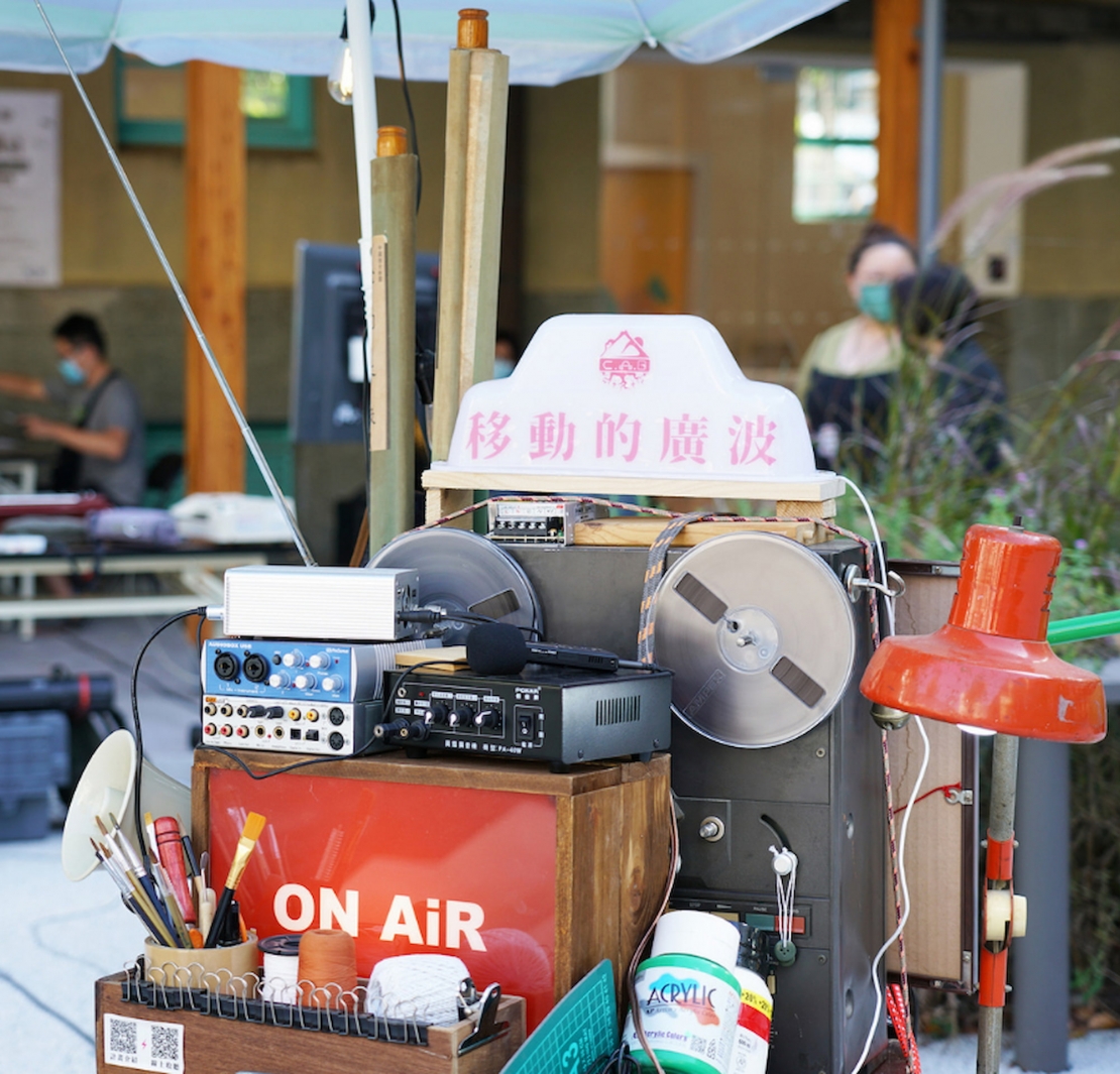 「嘉義的地下電台文化與社會環境之間的關係,是我們在發想聲音行動時的重要參照,」馮志銘說,在「移動的廣波」之前,嘉美館館長賴依欣便曾在其成立的草埕藝術工作室的計畫中,邀請在地藝術家與藝文工作者,以工作室與工作坊作為展演行動的平台,創造藝術家、地方社群與文史工作者多向對話與交流的空間,深化在地藝文與美學脈絡的連結。從嘉義的地下電台,到嘉美館的「移動的廣波」,美術館因此能藉著自媒體特性,在內容生產、延伸,與踏查的層面上,化被動為主動。