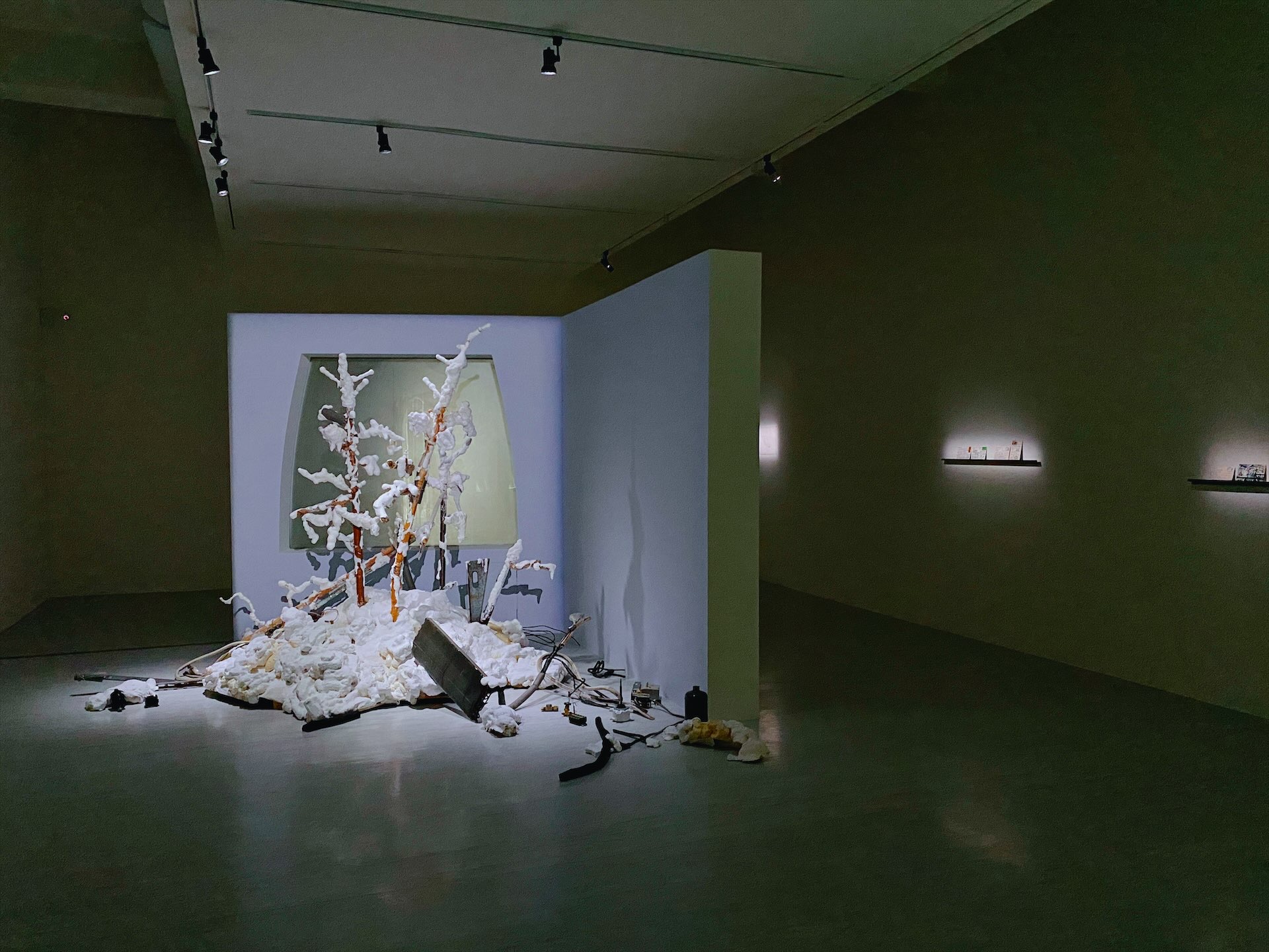 劉文琪《有一種叫天使山的冷》,藉由年輕藝術家與她的父親─中年冷氣師傅之間半虛構往返的明信片,談論高海拔雪地有關「冷」的感受經驗,以玻璃霧氣塗鴉、擬造雪景、冷氣工程圖為物證,與對話內容互為隱喻,形塑冷的多重敘事場景,意圖以無法錨定解釋之感覺,在觀者腦海生成屬於各自開放性的故事結尾。