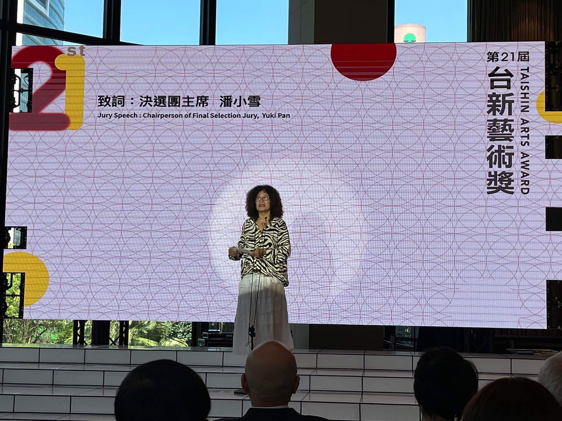 決選團主席潘小雪上台致詞時,提及7位決選委員對於今年入圍作品的看法,「今年共有17件作品入圍,有研究型的創作、大型策展計畫;有對個人存在的反思,或者是對族群處境的對看;有藝術形式的開創,提出新的視覺經驗、身體語言;有對台灣久遠的歷史事件或在地文化的轉譯;有用聲音召喚空間想像與人文的感動。」因此,要在這些難分軒輊的入圍作品之中,進行比較、評選並不容易,但決選委員們最終仍是以作品是否能回應台新獎的精神,具備時代精神、對社會人文的關懷,甚至創造新的視覺經驗、開展新的美學思維,作為定奪標準。最後,無論是否獲獎,7位決選委員期許每位入圍者,都能回歸本心、持續創作,把握往後每一次的機會。