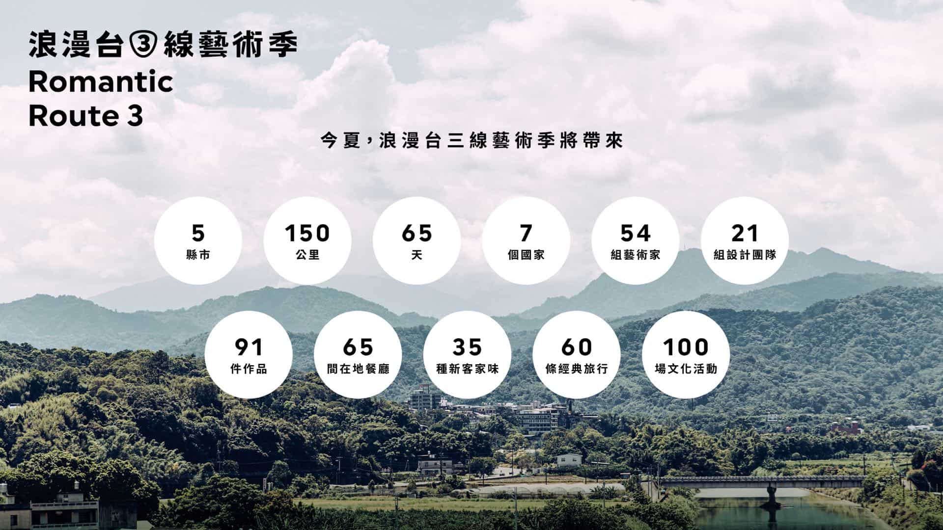 為了方便觀眾體驗150公里的台三線藝術季,總策展團隊區分了第一:桃竹、第二:苗栗、第三:台中三大展區,各在「北埔或者洋樓」、「公館客家文學花園」、「東勢林業文化園區」三地設置藝術季服務中心。在「關西太和宮」、「竹東台鐵車站」、「獅潭中油加油站」設置假日限定資訊站。