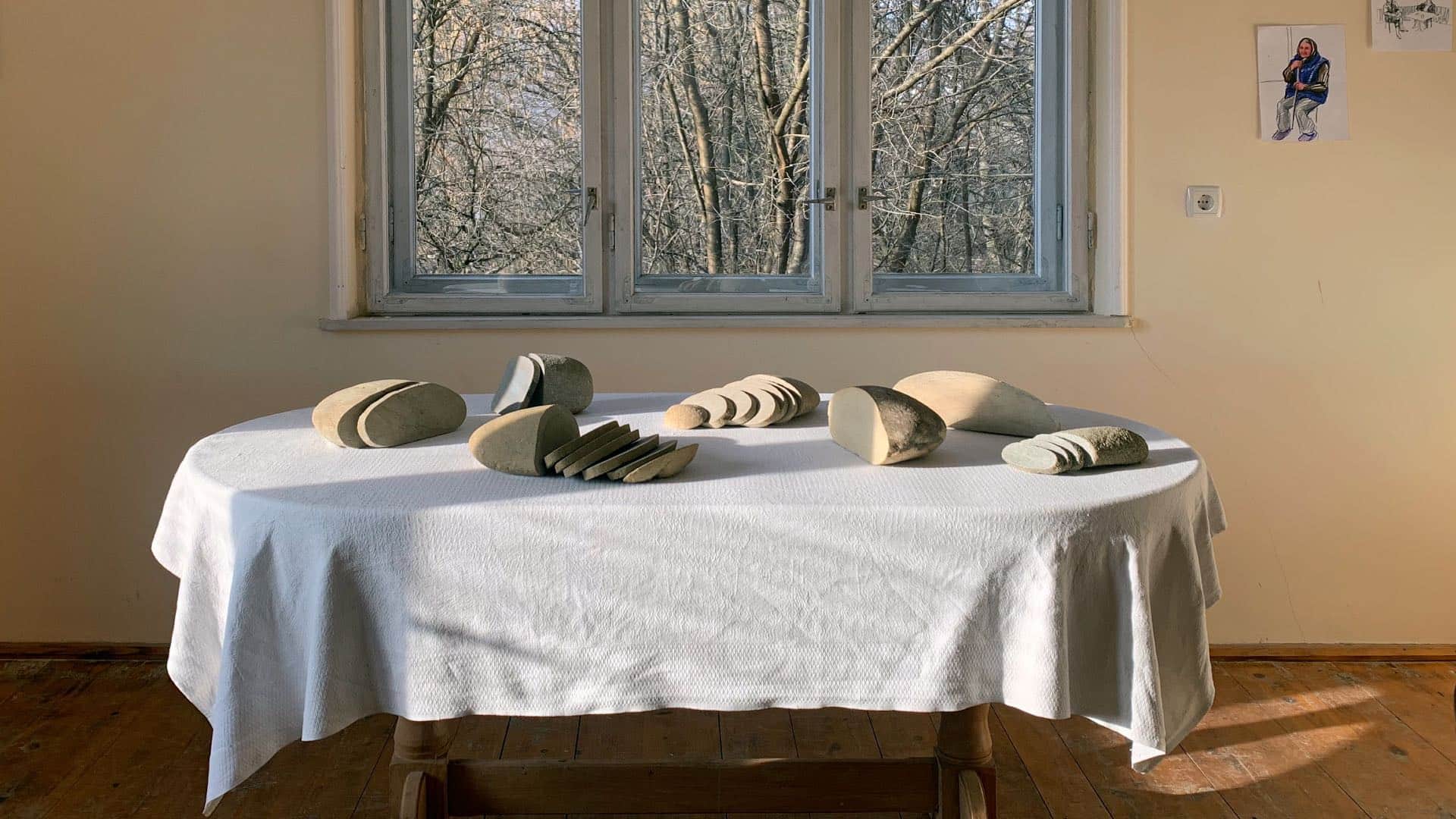 其中,邀請到烏克蘭知名藝術家詹娜·卡德羅娃(ZHANNA KADYROVA )展出,她用撿拾的石頭做成麵包形狀,描繪了從家鄉基輔避難到山村的過程,隱喻期待回歸正常生活的渴望,不僅是呼應了原、客、閩三族群曾經的衝突歷史,也對應了當下台灣社會面對戰爭的焦慮與對和平的期盼。另外也有來自日本藝術家西田秀己的作品《脆弱之椅》、藝術家陳湘馥《沈睡的少年》等精彩作品。