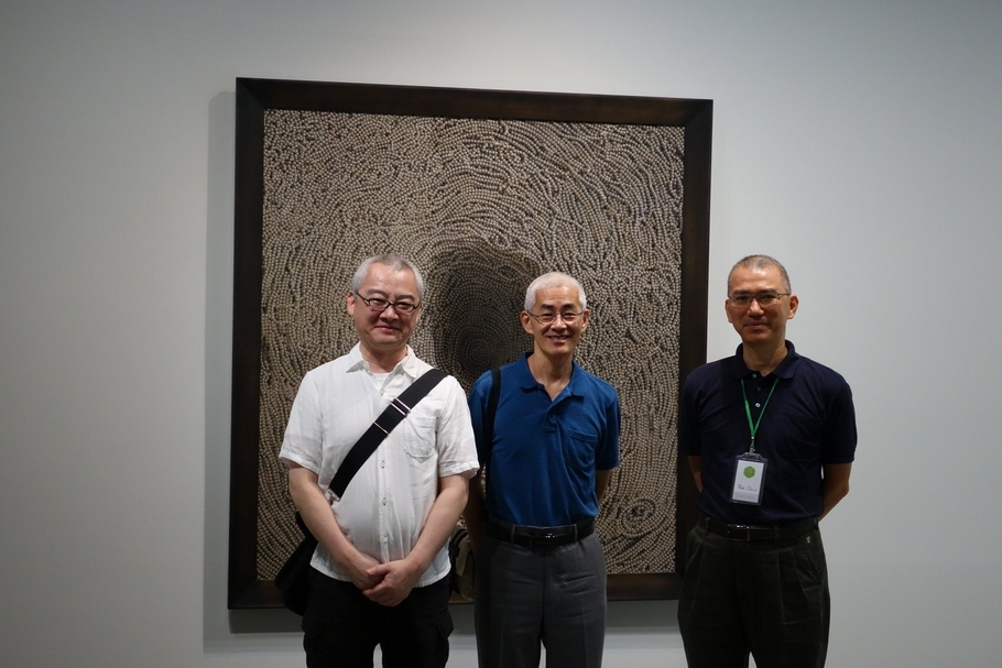 左起:藝術家須田悅弘、藝術家顧何忠、毓繡美術館館長李足新。(攝影/游如伶)