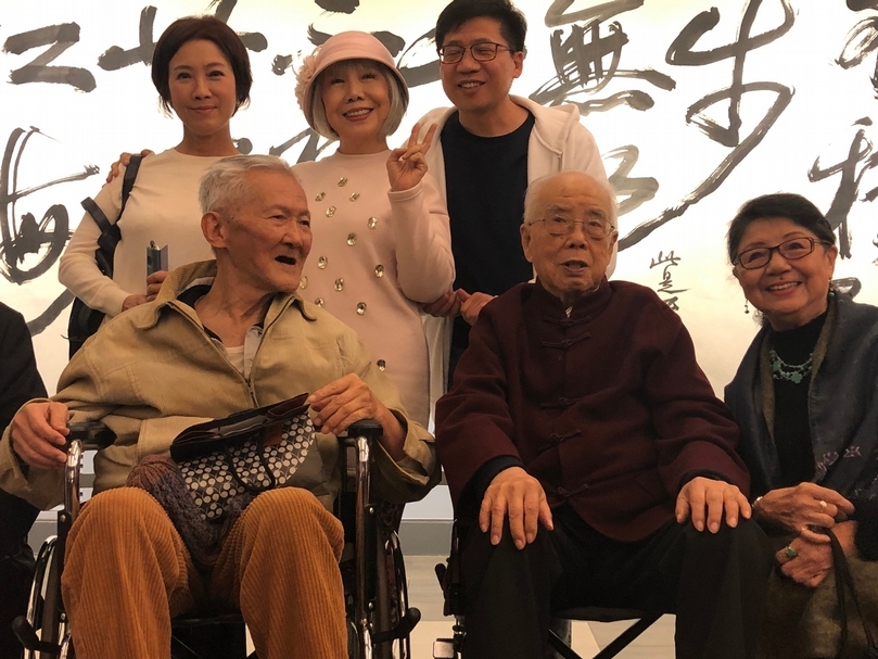 吳平(左2)今年出席藝術家傅申個展,與傅申(左1)合照。(本刊資料室)