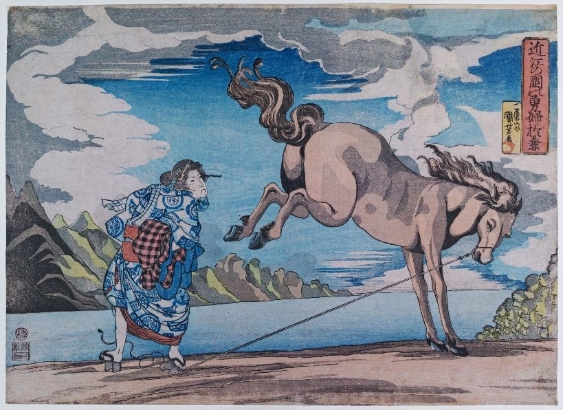 江戸時代(1830)歌川國芳《近江國勇婦於兼》浮世繪,模仿《伊索寓言》插畫。(©神戶市立博物館)