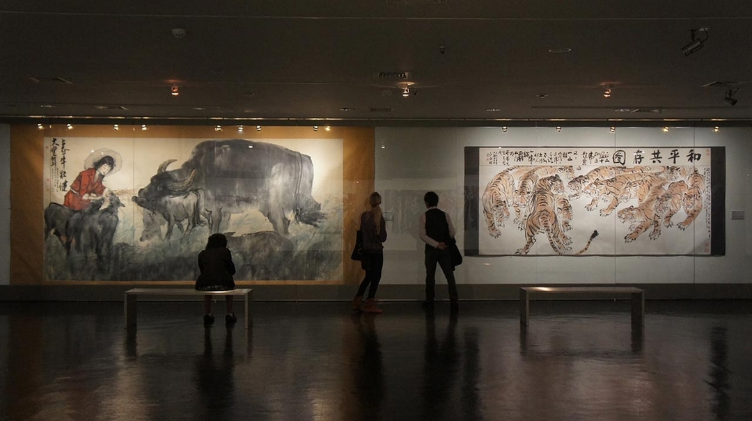 李奇茂1985年《春牛壯健大豐年》(228×470cm),與鍾正山2005年《和平共存》(120×460cm),尺幅巨大,氣勢雄健。李奇茂此作亦是國立歷史博物館典藏水墨畫單幅尺幅最大之作。(本刊資料室)