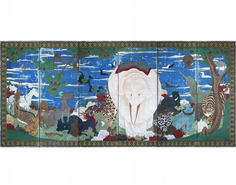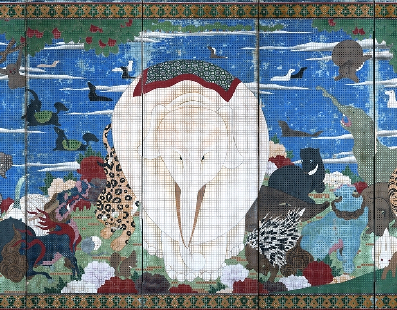 伊藤若沖(Itō Jakuchū)《鳥獸花木圖屏風》局部。(© the japan times)