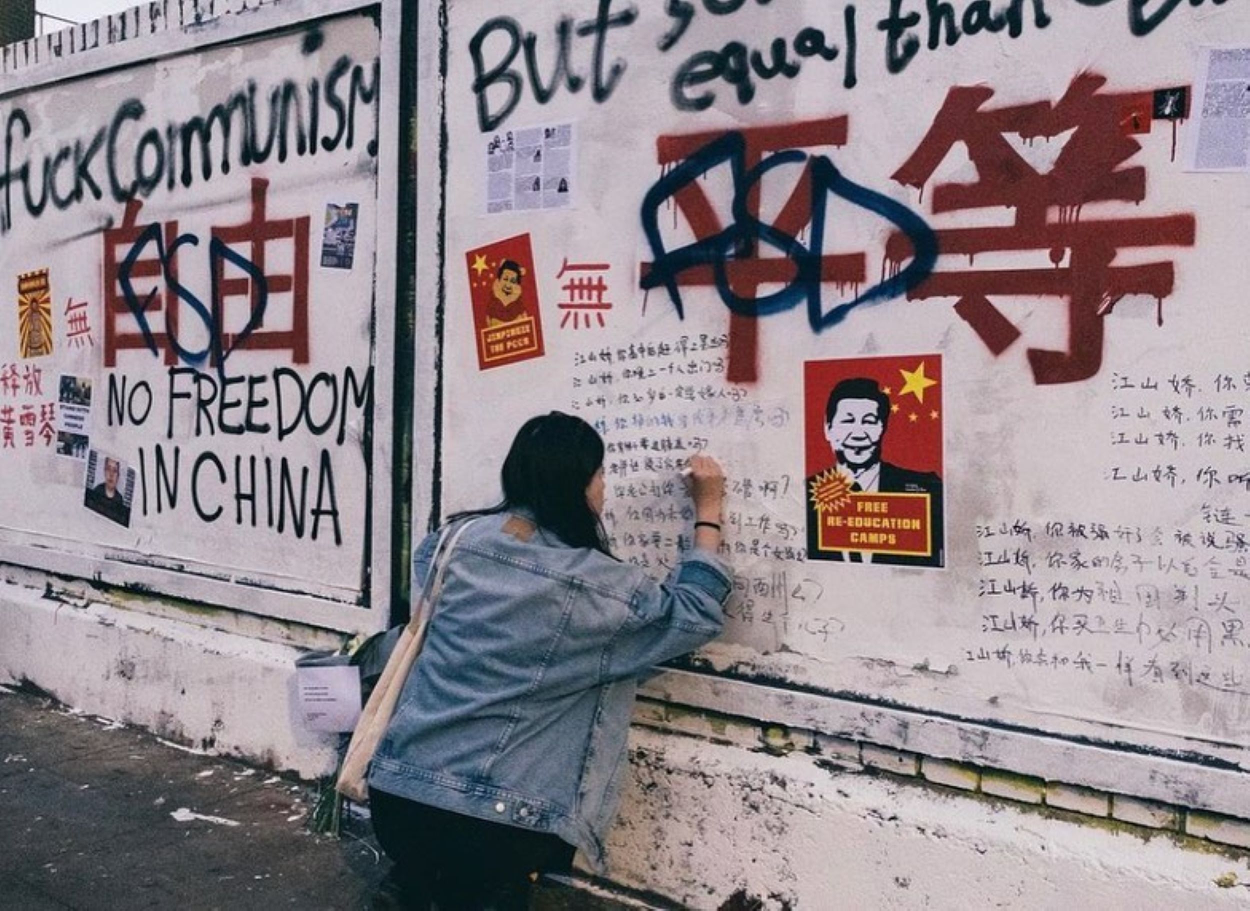 當這些學生將這種像是單戀幻滅般的情緒,組織成一種創作行動時,它所選擇的宣洩環境,則是知名的自由塗鴉區。這個自由塗鴉區的牆面看似凌亂,卻代表著塗鴉社群文化長期積累出來的共識與禮儀,中國留學生這個試探自由底線的行動,則硬生生地將中國社會的真實景況,蓋塗在這樣的共識之上。一如這些創作者粗暴地想像「自由」應該如何,他們粗暴地換上中國街頭政宣字樣,蓋掉這個地方積累的文化;一如中國政府粗暴地對待各種不符合國家發展的文化那般。