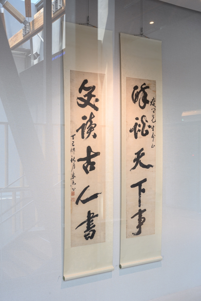 本展區闡述二十世紀初,面對新式教育的來臨,客籍仕紳一方面透過擊缽吟社等組織傳承古典詩詞,一方面借新式公共空間舉辦書畫展會活動,與近代洋畫展覽分庭抗禮。於是,中壢地區的以文吟社、苗栗栗社等組織既聯絡情感,書法也在其中成為整合地方認同的載體。而新竹州的書畫前輩,則透過新式獎賽活動,讓劉家驥 (1866-1948)、劉崧生 (1896-1968) 父子、湖口張采香 (1870-1949)、竹塹范耀庚 (1877-1950)等家族享譽全國。