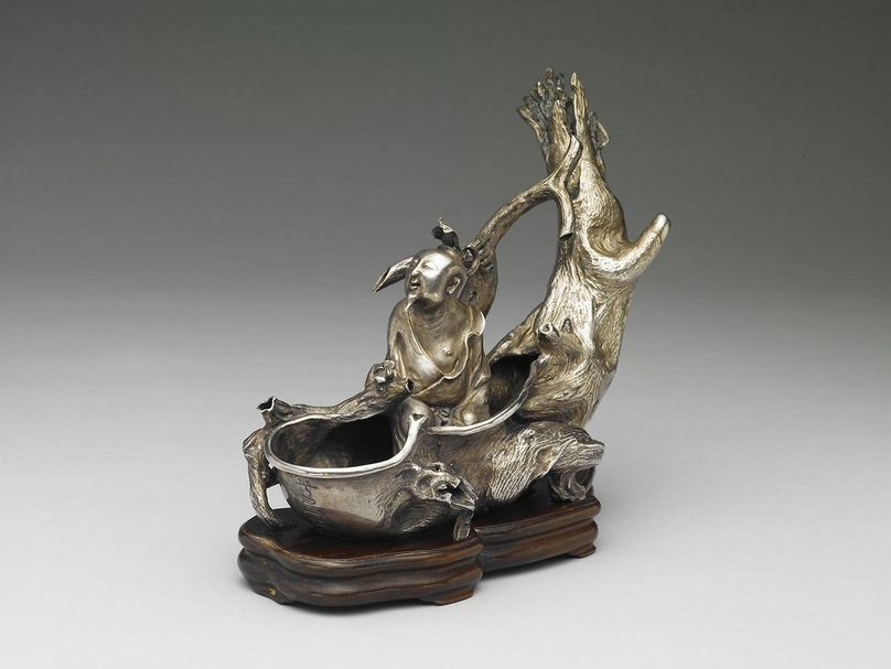 元至明 朱碧山款《張騫乘槎》。(國立故宮博物院提供)
