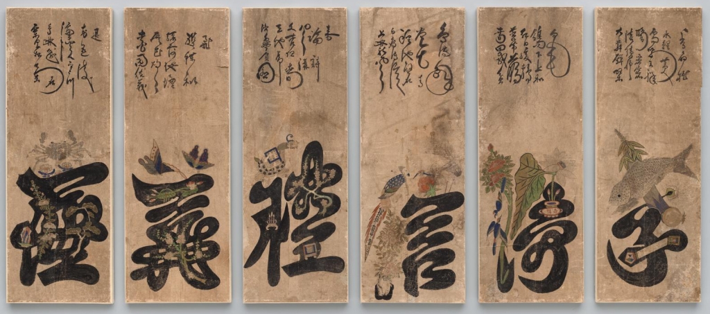 在了解歷史後,展覽第二單元「藝術交會」呈現朝鮮藝術的不同面向,有書籍、精美的螺鈿工藝和陶瓷文房,大阪東洋陶瓷美術館借展的朝鮮瓷器是不容錯過的看點。值得注意的是,朝鮮時代儒家思想盛行,白瓷清淨素雅的形象和其治理理念相合,因此成為主流。繪畫方面,蔚為朝鮮特色的真景山水圖、文字圖、虎鵲圖沒有缺席,這些異於中國繪畫的作品,勢必帶來新鮮的視覺感受。
