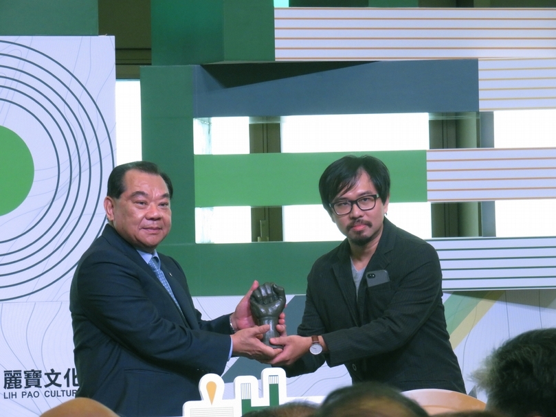 麗寶集團董事長吳寶田頒發首獎給台灣藝術家戴士偉。(攝影/張筠)