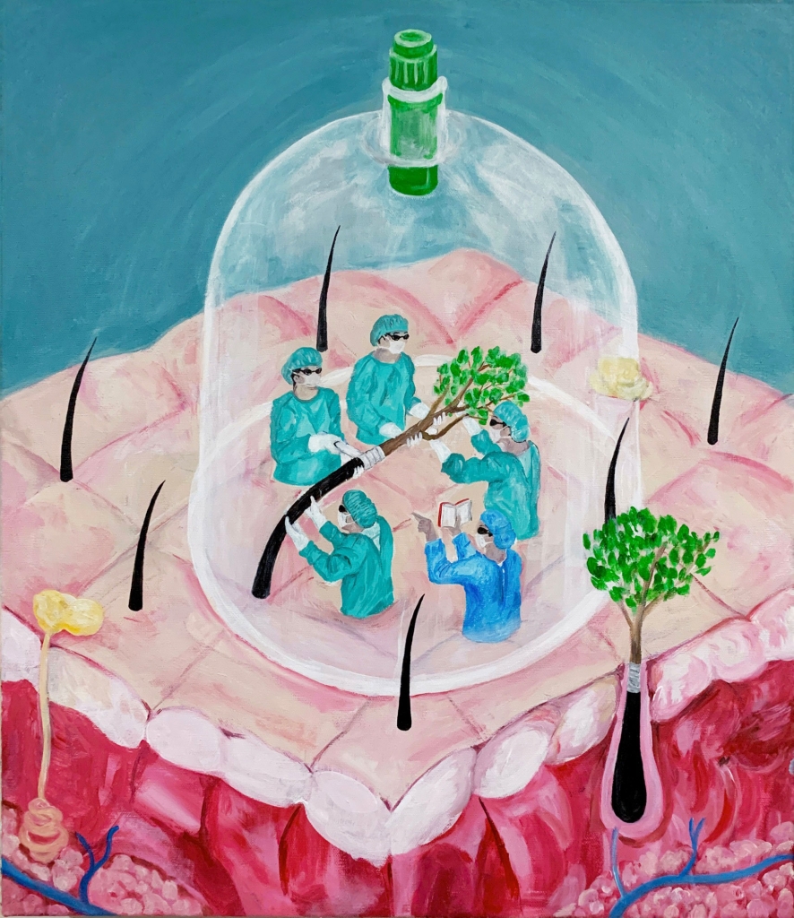 王俞晴的錄像作品表述疫情期間在美國紐約因為戴口罩而遭遇歧視的感受;林奕軒的創作從解構符號,以拼貼、重組成去圖像的畫面;胡峻傑的不銹鋼雕塑是自我認知與情緒的反射;陳佑朋以創作呈現空間中的變化,藉此隱喻人們生活在空間中的感受。陳楷仁的詼諧畫風傳達對社會的觀察;張驊的油彩作品呈現數位時代下人們的生活方式;楊奕軒則專注於時間性的表達,在平面繪畫上再現某種記憶;謝榕蔚的抽象畫中,以原子筆為媒材,並從中創造循環反覆的時間韻律。