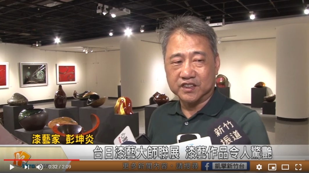 彭坤炎, 14歲開始在「唐木家具店」工作,研習生漆塗裝。後來因臺灣的經濟環境改變,隨著外國訂單減少、工資物料成本上漲導致利潤降低,他決定轉向漆工藝創作。從日籍友人植村修手中取得日本漆藝相關專業書籍及工具,他以自學方式找到個人獨特的創作手法。2011年,彭坤炎的漆作〈祥瑞之光〉參與日本第19屆「漆之美展」,榮獲第三大獎的農林水產省「林野廳長官賞」,他是首位獲得這獎項的外國參賽者。近年來他推動「中日國際漆藝交流展」,希望透過國際交流。這回精湛的作品《南島風光》(南島風光)入選日展的工藝美術部門,無疑也實踐理念,讓臺灣漆藝在國際上擁有發聲的力量。根據中央社報導,彭坤炎表示日本南島在抽象表現上是台灣,他想藉由作品表達臺灣的美。作品表現中央山脈、日月潭及海洋等意象,運用堆漆為中心做為胎體的獨特作法,施以變塗、蒔繪等技法。