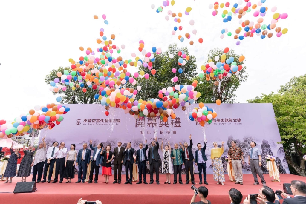 「巫登益當代藝術園區暨巫登益美術館(新北館)」於近日(9/17)盛大開幕,開幕當日名流雲集,各界貴賓共襄盛舉,館方以「放飛夢想」盛大精彩的開幕禮,迎接巫登益美術館的又一里程碑。開幕首檔展「山水真理」─巫登益當代意象彩墨作品,同步呈現近百幅「當代意象彩墨」創作,繪畫主題多元,以繽紛色系創造從傳統山水至未來寰宇的當代造境。展出作品無論是大膽不羈的潑墨,靈動優雅的留白或細膩多變的暈染,皆有獨到迷人之處,值得來者細細品味。