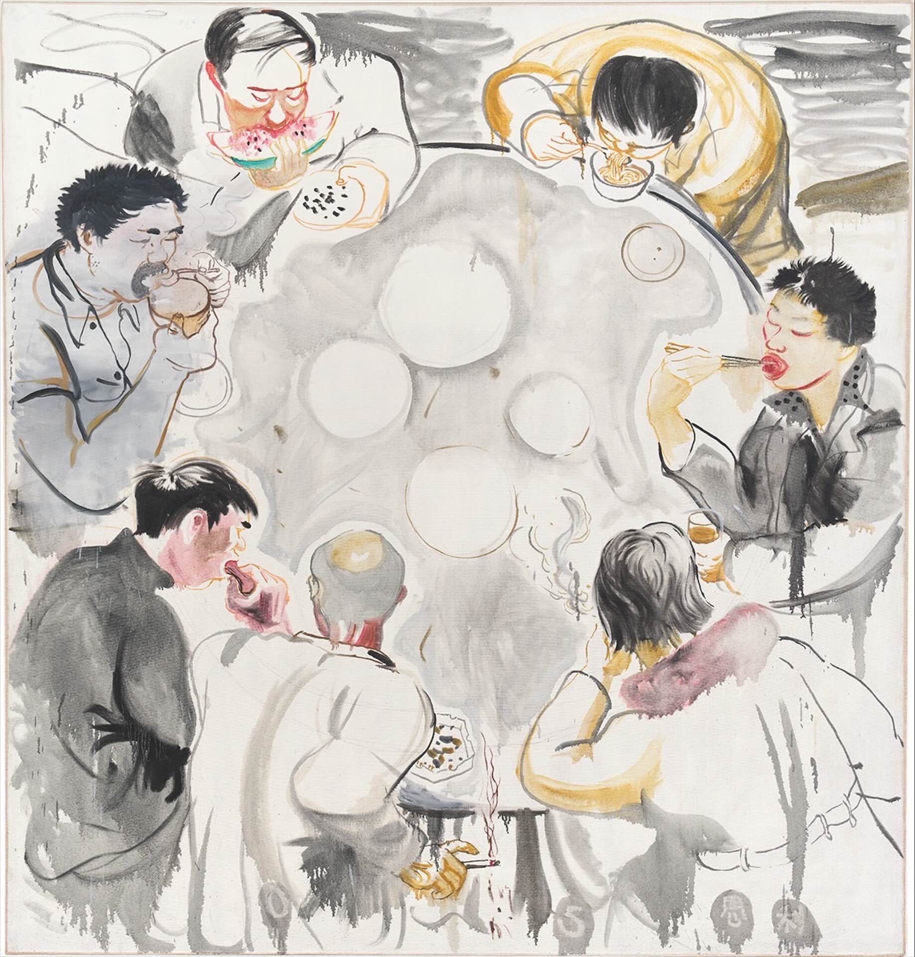 張恩利,《盛宴》,2005,布面 油畫,210x200cm。(中國嘉德拍賣提供)