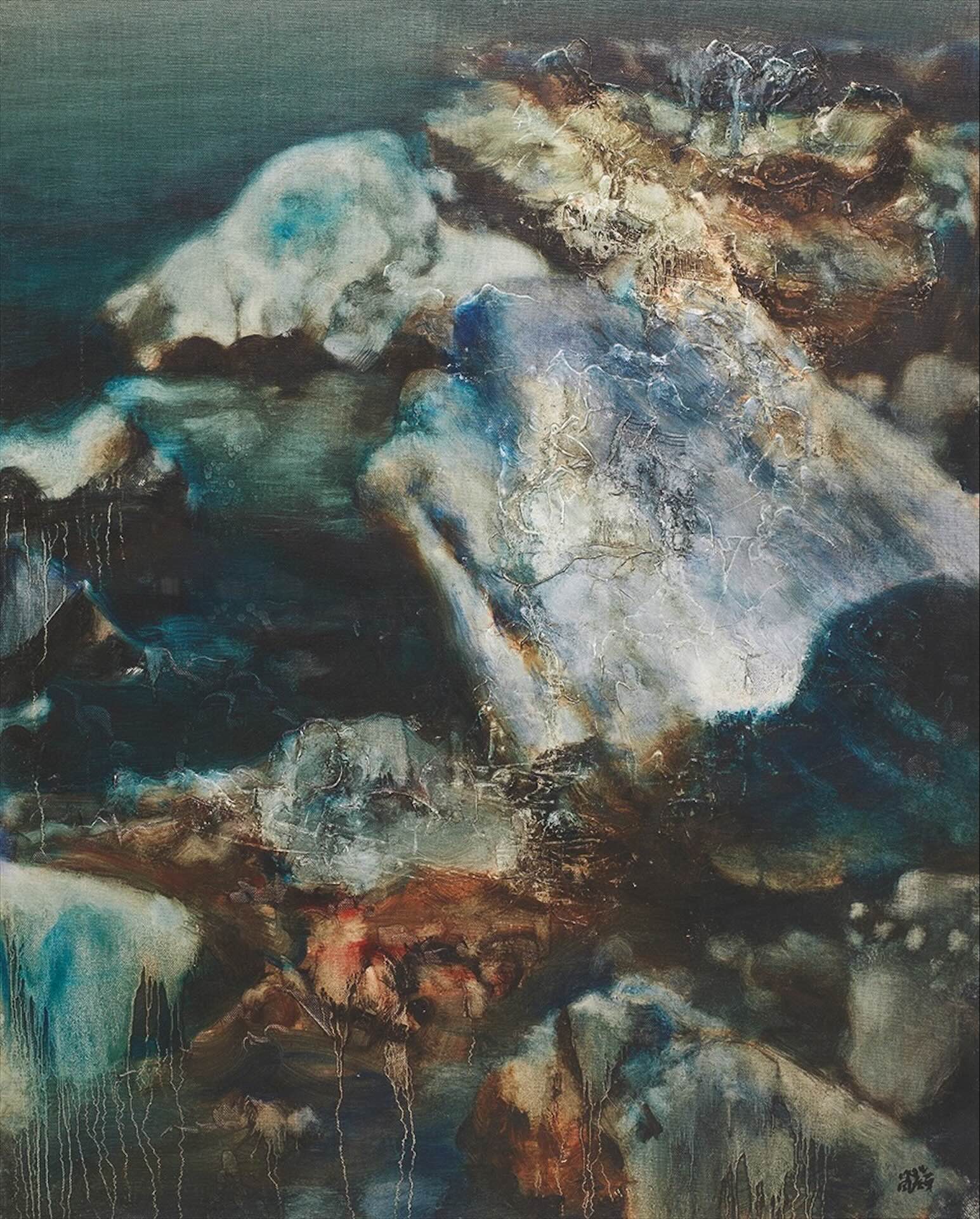 周春芽,《山石圖.去雅安上里的途中》,1994,布面 油畫,100x80cm。(中國嘉德拍賣提供)