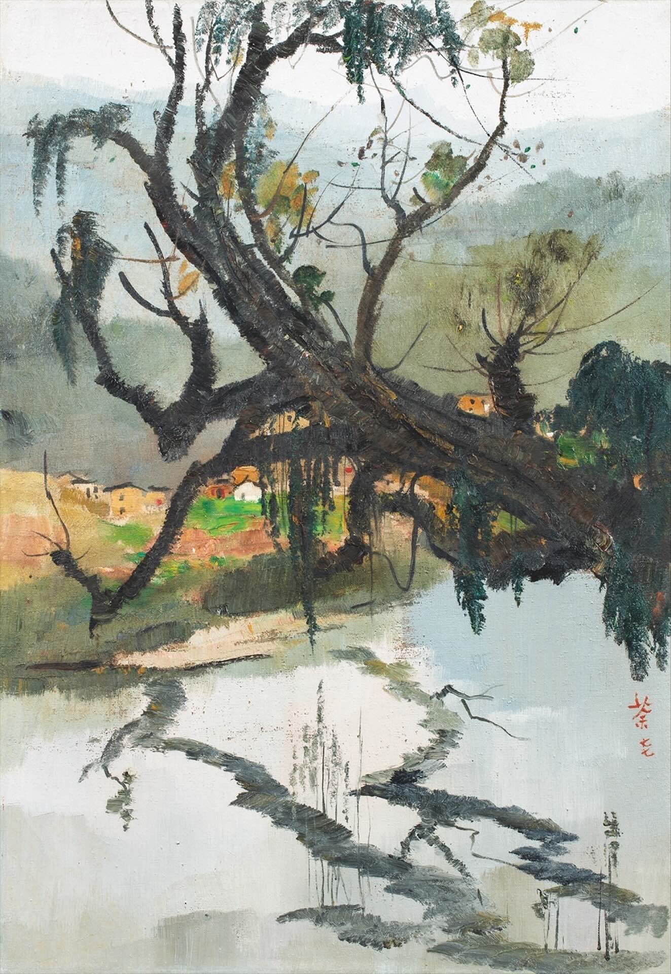 吳冠中,《靜溪樹影》,1977,布面 油畫,61×42.5cm。(中國嘉德拍賣提供)