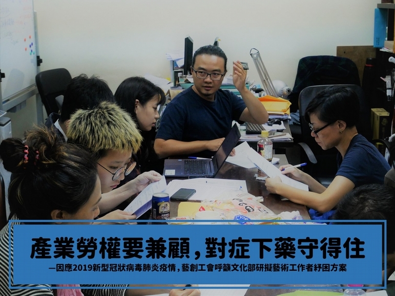 臺北市藝術創作者職業工會(簡稱藝創工會)呼籲文化部僅僅只是對於藝文團體紓困,恐怕無法直接保障藝文工作者在防疫期間的基本生活所需與受活動取消所減損之工資。在藝術工作者方面,藝創工會對照文化部、勞動部公開數據發現全台灣「創作與表演業」就業者中就有近六成是屬於沒有勞雇關係的非典就業工者。這代表大多數的藝術工作者無法得到勞動法規中有關於失業給付、資遣費、不受隨意解雇資遣、留職停薪、家庭照顧假、與雇主勞資協商…等等的保障,甚至是放無薪假的保障都沒有。