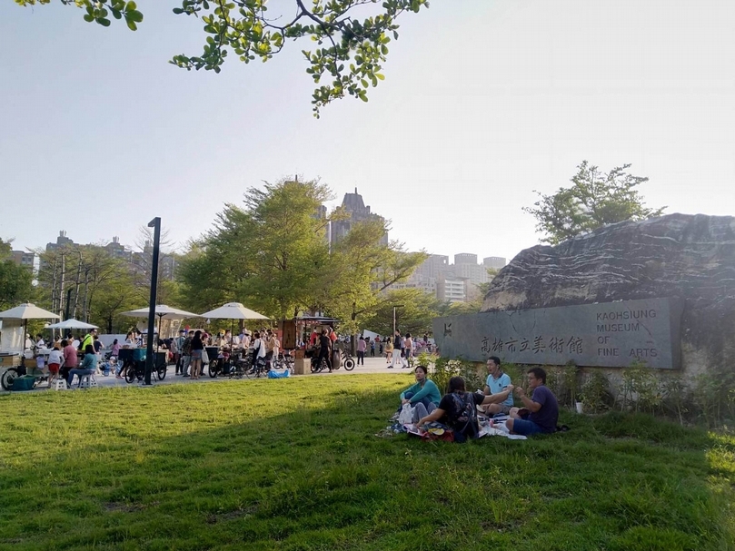 高美館閉館期間,戶外型展演、教育推廣及活動不間斷,將持續提供民眾優質的藝文體驗。圖為高美館近期與雄店合辦的風格攤車野餐市集,往後也預計推出文創手作、友善環境等不同主題規劃。 (高雄市立美術館提供)