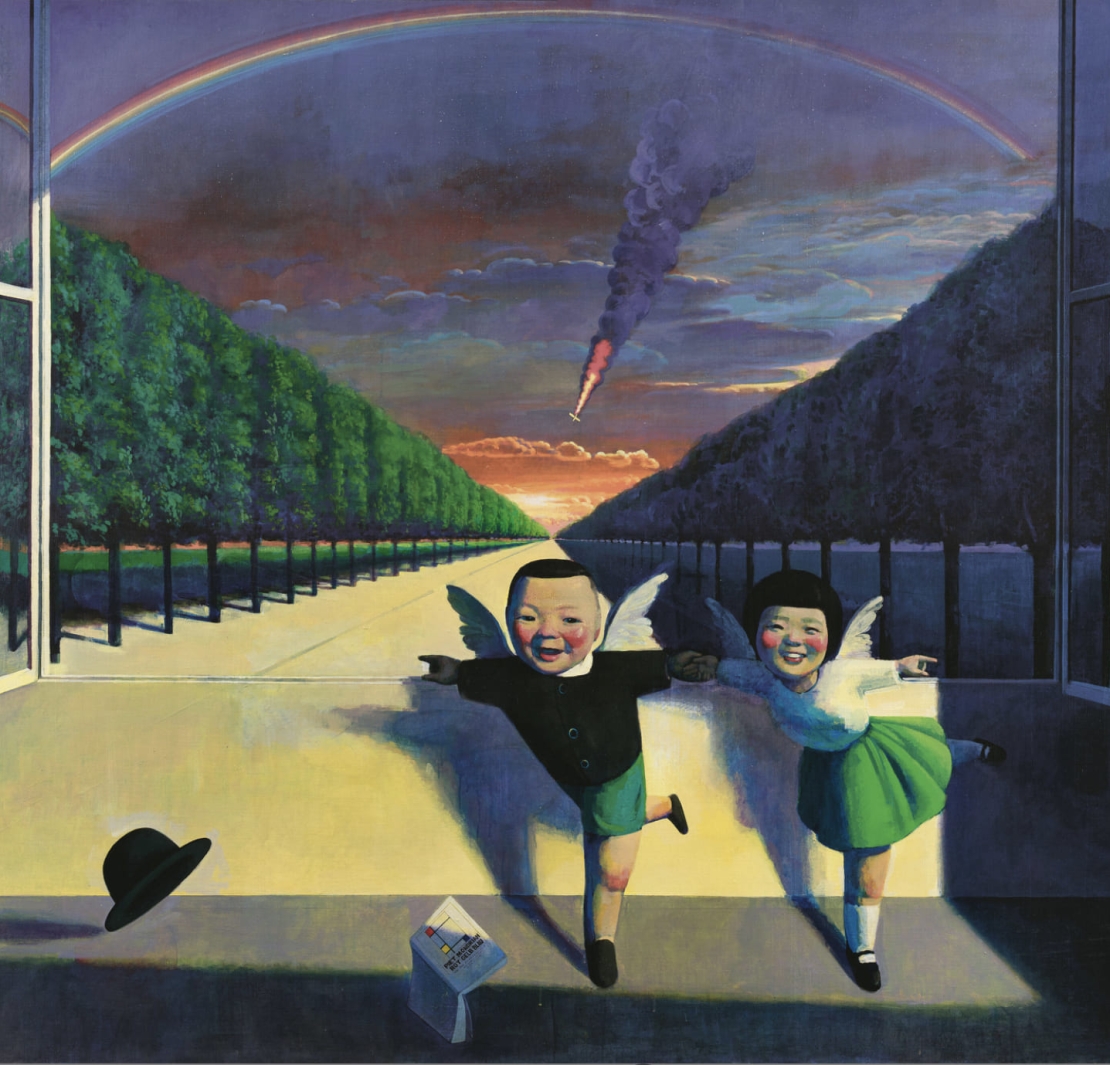 本場以劉野的兩件作品領銜,創作於1995年的《金光大道》以一對長著翅膀、張嘴大笑的兒童為主角,而許多畫面元素的細節都可看到各時期的標誌性符號,以及他對自己敬崇的西方藝術家之致敬,整體瀰漫著超現實主義與形而上藝術的神祕氣息。拍前估價達5,000萬至6,000萬,自4,800萬人民幣起拍,由中國嘉德董事總裁胡妍妍代電話委託買家多加一口價,以5,000萬人民幣競得,成交價達5,750萬人民幣,穩坐冠軍寶座。
