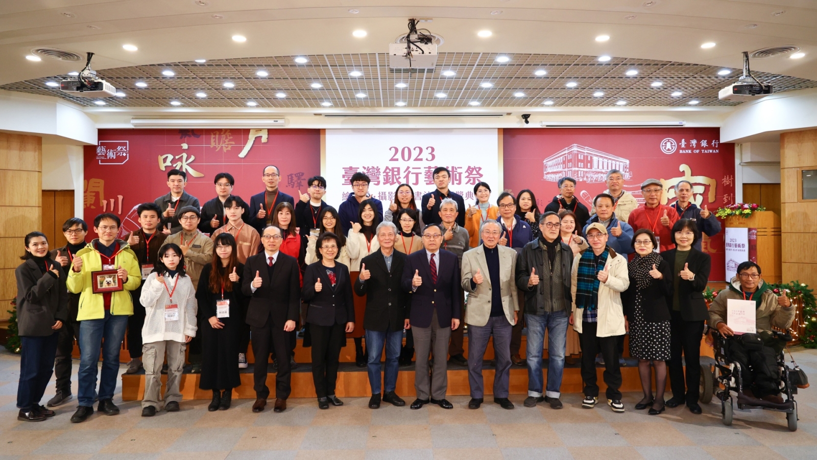「2023臺灣銀行藝術祭—繪畫季、攝影季及書法季」於去(2023)年12月22日在臺灣銀行公庫部舉辦頒獎典禮,歷經嚴謹公平的評審過程後,分別決選出繪畫季22位、攝影季26位以及書法季13位得獎者,並邀集評審委員齊聚在充滿聖誕節溫馨氛圍的典禮現場,共同慶祝藝術祭活動的豐碩成果並為得獎者喝采。