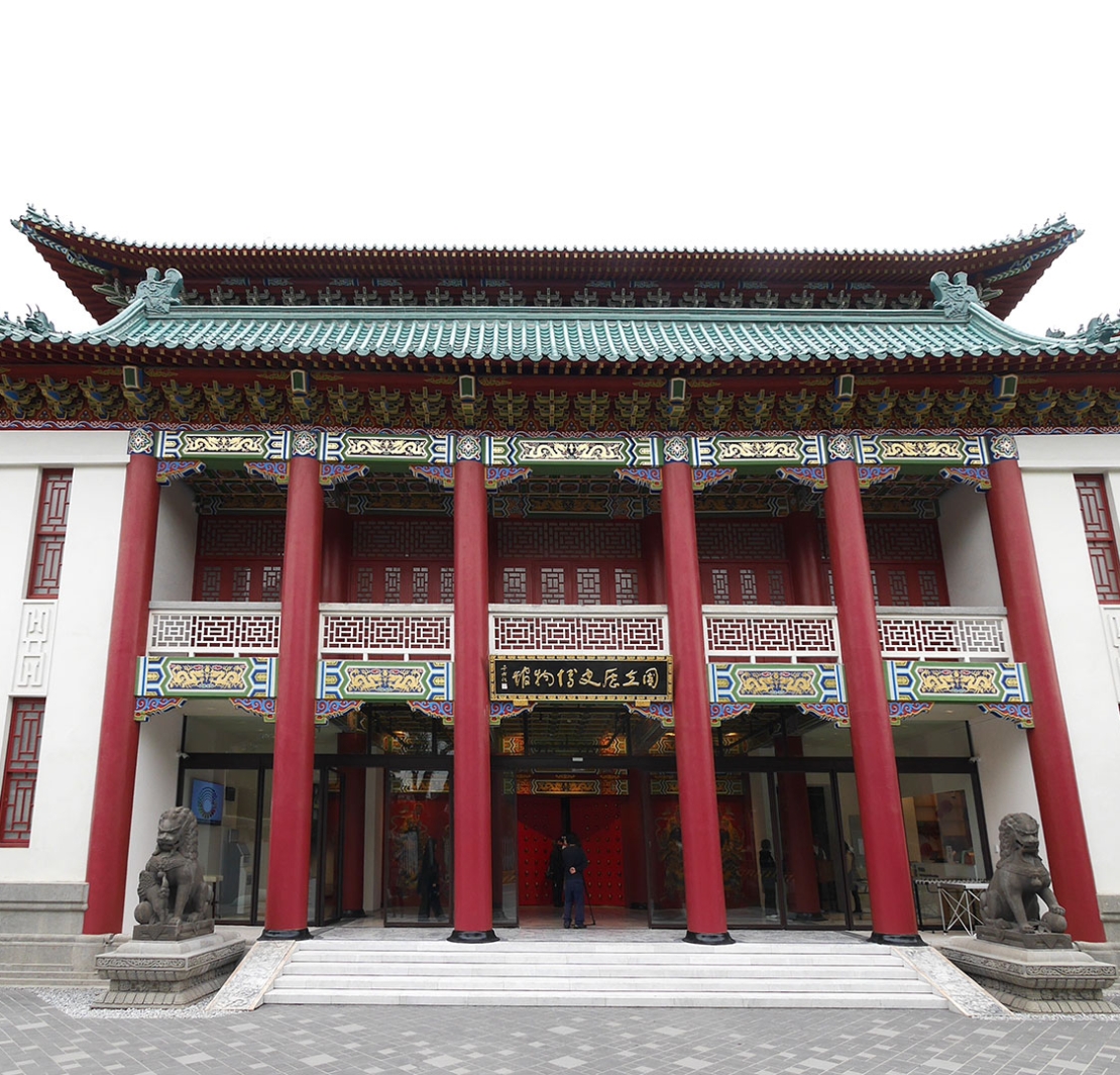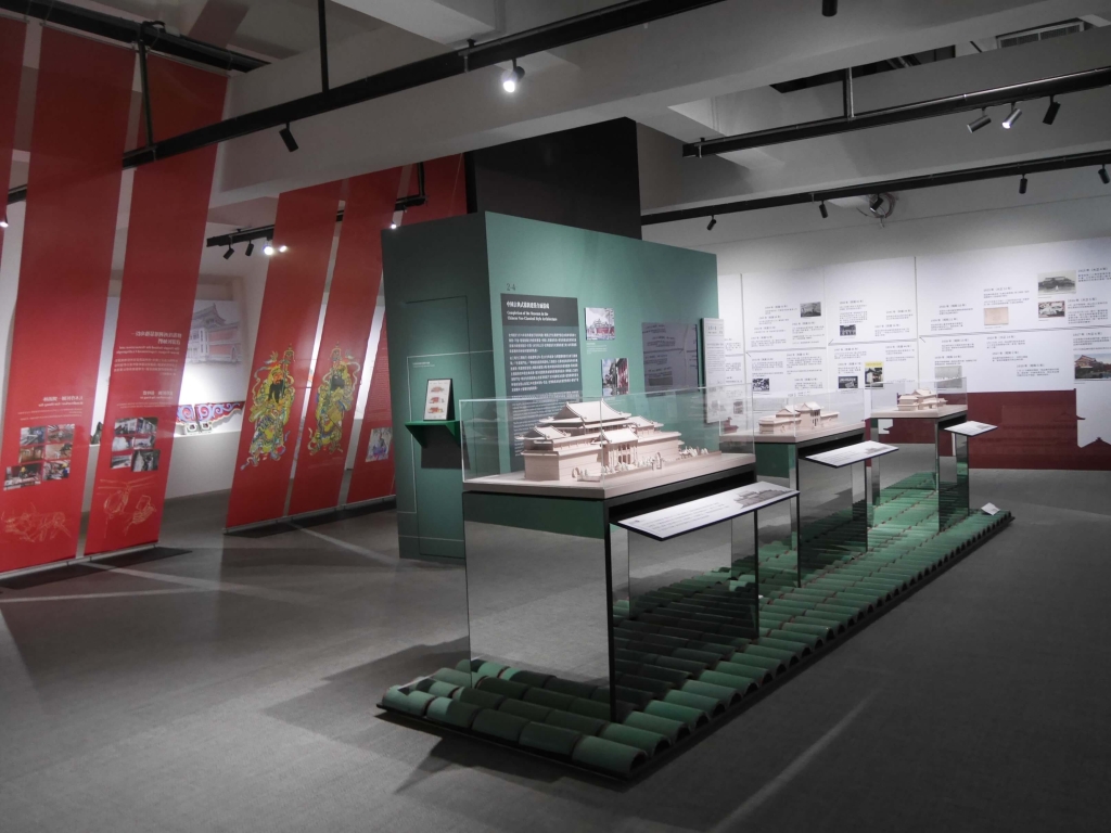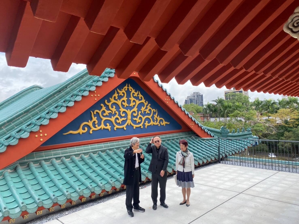 四樓餐廳設有外推平臺可以走出去,看見史博館屋宇細節。在戰後歷年增改建下形成的中國古典式樣,使其建築形制由外至內、從上到下,無論入口庭院、屋頂、瓦片,到彩繪、雕塑、門柱等,均富中式建築裝飾的獨特文化內涵。四樓屋宇側面呈山角形,白璧描繪黃金色的花紋,用色鮮豔亮麗,屋脊裝飾想像中的走獸,展現明清建築特色。