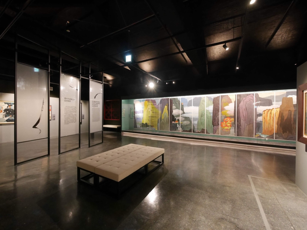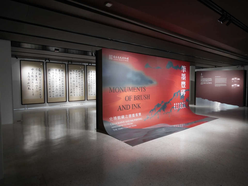 一、二樓為開館特展「筆墨豐碑—史博館藏之書畫重寶」,從館藏精選作品200 餘組件,以「筆墨豐碑」為題,分為「山水華滋」、「生氣宛轉」、「人物神采」、「書藝神思」等四個單元,展出書畫名家于右任、溥心畲、張大千、黃君壁、傅狷夫、林玉山的精選作品,展出至5月12日。史博館作為華人世界擁有最多南張北溥作品的博物館,開關之際展出多件經典作品。另外亮點作品包括史博館修復後首次面世的林玉山大師作品 《黄牛》,也是史博館對於重建臺灣藝術的努力之一。還有倡議標準草書的于右任大師晚年最重要的草書八聯屏 《建館記》、張大千晚年的潑墨大作《夏山雲瀑》與 《深山古柏》。