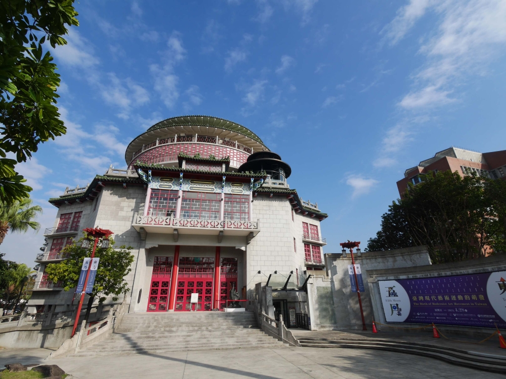 在史博館正館一側,南海學園裡有棟仿北京祈年殿的「天壇」建物,青色琉璃瓦、紅柱白窗櫺的重簷攢尖屋頂造型式樣,是在民國47年由當時肩負「復興中華文化」使命的留法學人盧毓駿建築師所設計,今日成為臺北當代工藝設計分館。