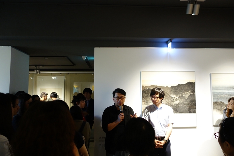 從戰後至今,水墨畫在台灣發展已經超過半個世紀,回溯1960年代,藝術家劉國松為解決傳統水墨問題,提出「革中鋒的命」,擺脫媒材形式的限制之後,水墨一詞的定義也更加開闊。水墨作為一種文化資產,如何與生活結合已是當代重要課題,大觀藝術空間於即日起至6月4日舉辦「進/出『地方』—吳繼濤、姚瑞中的當代風景游牧」雙人聯展,藉此一探兩位藝術家在當代語境之中如何運用及重新詮釋傳統水墨。4月29日下午開幕當天舉行座談會,由策展人國立師範大學美術系白適銘教授主持,藝術家吳繼濤和姚瑞中對談,現場與會嘉賓雲集,藝術家、知名學者和年輕學子或站或坐聚滿畫廊一、二樓,足見兩位教職與創作兼長的中生代藝術家的影響力與號召力。