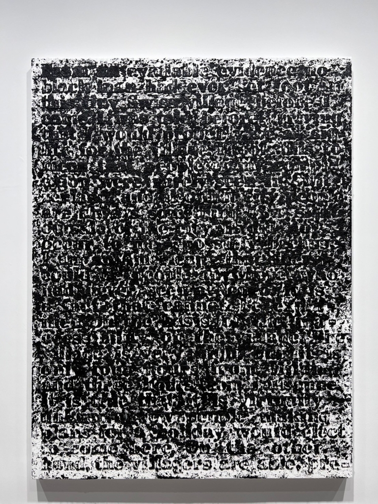 豪瑟沃斯(Hauser & Wirth)在今年初剛剛開幕的位於中環皇后大道的新空間,展出美國觀念藝術家格蘭.里根(Glen Ligon)基於文本的繪畫作品。此次首度於香港個展,呈現其「陌生人」(Stranger)系列的延續與新抽象系列「噪音」(Static)。這些作品皆以詹姆斯.鮑德溫(James Baldwin)的經典散文《村子裡的陌生人》(Stranger in the Village)的文本出發,藉由模糊或抽象化文本,凸顯語言作為描述當代文化有效性的問題,以及藝術家對文化與身分政治的探究。