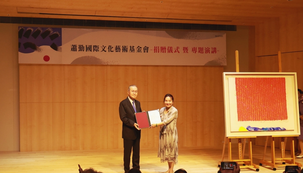 捐贈儀式由蕭勤國際文化藝術基金會吳素琴董事長展開序幕,首先介紹多位與蕭勤老師淵源甚深的青年,由他們帶來的文化表演,讓場內觀眾在悠揚的樂音中緬懷藝術家蕭勤生命中許多重要時刻。隨即的贈畫儀式,由台灣創價學會林釗理事長頒贈典藏狀予蕭勤國際文化藝術基金會。而在儀式之後,則由臺灣美術史學者蕭瓊瑞教授帶來專題演講「宇宙遊子:蕭勤和他的創作」,向觀眾概要介紹蕭勤生平,回顧這位開啟臺灣藝術圈中西文化交流的藝術家。