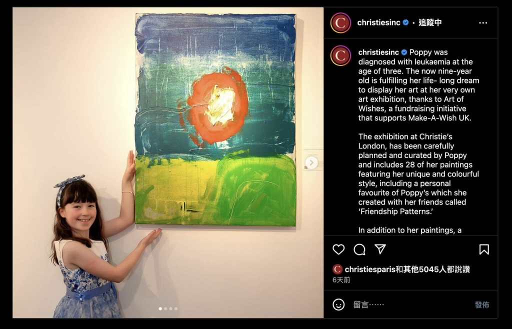 九歲女孩願望成真 倫敦佳士得舉辦個展