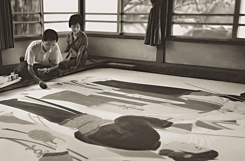 林之助繪製台南大飯店〈貴妃圖〉,夫人林王彩珠陪伴一旁。