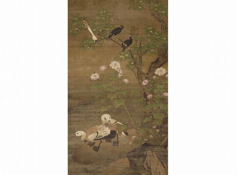 明呂紀〈四季花鳥圖〉四件,東京國立博物館藏。圖為其中之一。