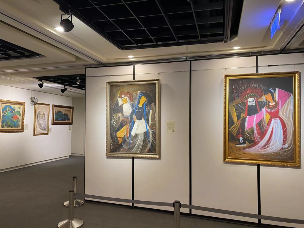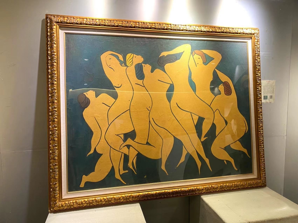 展覽入口處即擺放一件名為「裸女群歡」的七裸女油畫,作品說明上註明為「常玉少見的裸女站姿畫」,收藏者為「協會成員殷光慧女士」。據立青文教基金會經常玉家屬授權而設的常玉線上資料庫,常玉畢生共創作56幅油畫裸女作,而從單幅作品的裸女人數上看,則以2019年於佳士得香港上拍的《五裸女》為最多。令人驚異的是,2019年在佳士得香港現當代藝術夜場以3億398萬5千港元成交的《五裸女》,竟也出現在這次「倜儻筆墨」特展中,惟尺寸、筆觸、色彩、畫面細節等均有極大不同,裸女形象模糊不清、無甚個性,地毯上的花紋、女子腳邊慵懶的小動物都細節全無,對比公開資料中《五裸女》精準有力的線條與造型、飽滿的色彩,落差明顯。