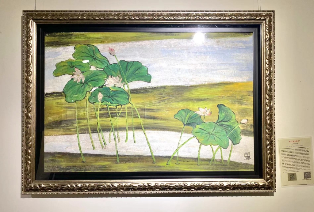 除入口處常玉前所未聞的「七裸女」之作令人驚訝之外,一件藏於史博館、正在當期夏季特展中展出的銘黃色調《荷花》(立青文教基金會常玉線上資料庫中登記題為《荷塘》,1950至1960年代),在這次特展中甚至變成了綠色,標註作品名為「夏日荷花」、創作年份為「1935-1942年」。