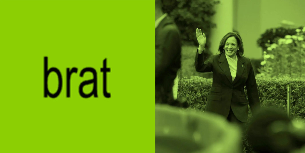 在美國總統拜登(Joe Biden)近日宣布退選並表態支持賀錦麗(Kamala Harris)後,Charli XCX 在社群平台 X 上發佈推文:「Kamala Is Brat.」,而善於擁抱迷因文化的賀錦麗競選團隊隨後也更換官方頁面圖像,讓「霓虹萊姆綠」在幾天內迅速成為網路迷因,透過 TikTok 和 X 等社群平台擴散,成為本次美國總統競選活動中象徵賀錦麗與其支持者的一個有力視覺符號,有效拉近了與年輕選民的距離。