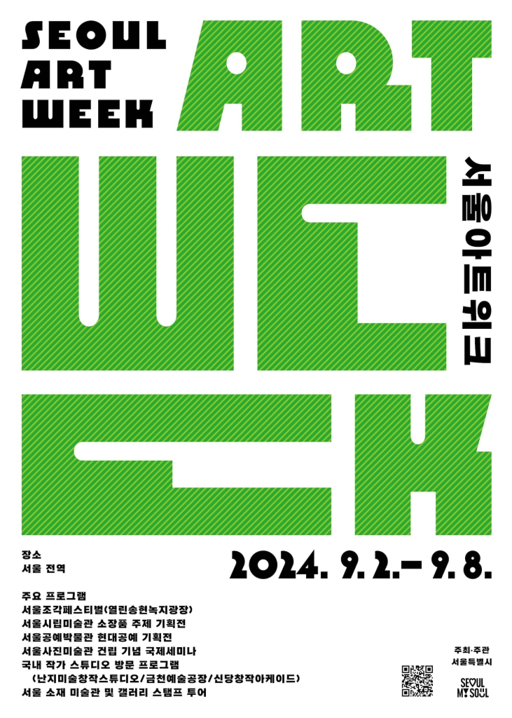 由首爾市政府主辦的第二屆「首爾藝術週」(Seoul Art Week)將於9月2日至8日盛大登場,除了為即將到來的斐列茲首爾(Frieze Seoul)和韓國國際藝術博覽會(Kiaf Seoul)預熱,也聯動市立美術館、博物館與畫廊等等共計上百家藝文機構推出特別展演與活動,今年更特別與文化體育觀光部和藝術經營支援中心主辦的全國性藝術盛會「2024韓國藝術節」(2024 Korea Festival)合作、擴大舉辦範圍,讓韓國各地都化身為大型藝術慶典現場,期待吸引更多的藝術專業人士和愛好者到來。