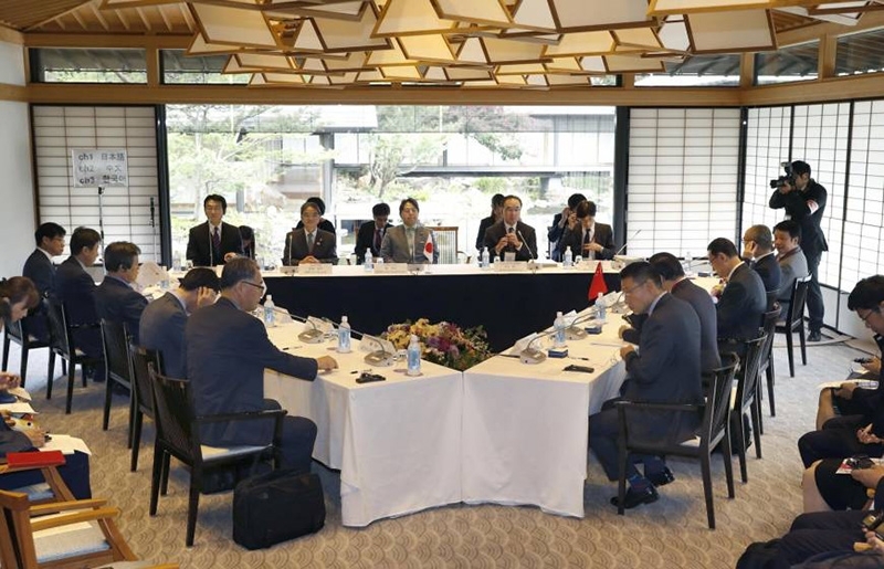 日本、中國和韓國代表團於京都舉行高峰會議,就未來奧運期間的文化合作舉行會談。圖片提供:JAPAN TIMES