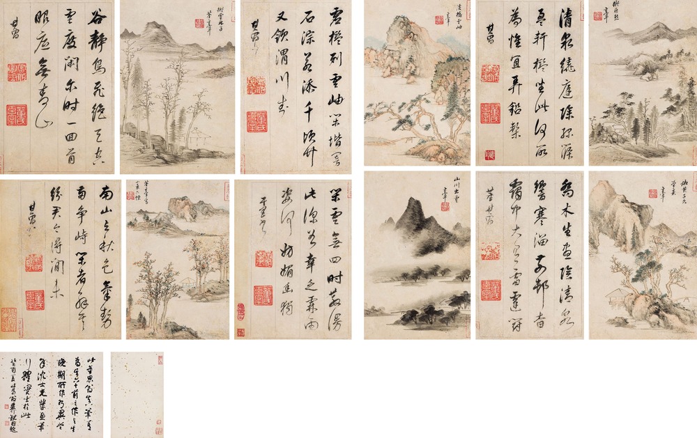 8.董其昌《書畫合璧冊》,水墨紙本、設色紙本,24×15.5公分×12,無底價,成交價156萬港元。