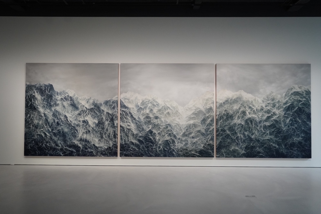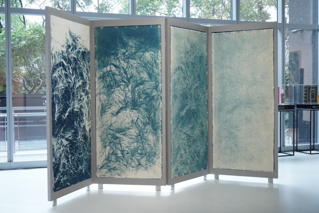 此次在gdm 爍樂台北的吳季璁個展「氰山映月」作爲開幕首展,畫廊帶來了數件展現藝術家更高格局的新作。《氰山集之二百三十五》、 《氰山集之二百三十六》、 《氰山集之二百三十七》三件組合在一起,在挑高的畫廊空間中展現了磅礴的氣勢。而《皴法習作:消逝的原件》,則在屏風的裝裱形式上,展現了皴法習作在氰版攝影與宣紙的反覆運用之間,進一步使虛實物象消逝—顯現。