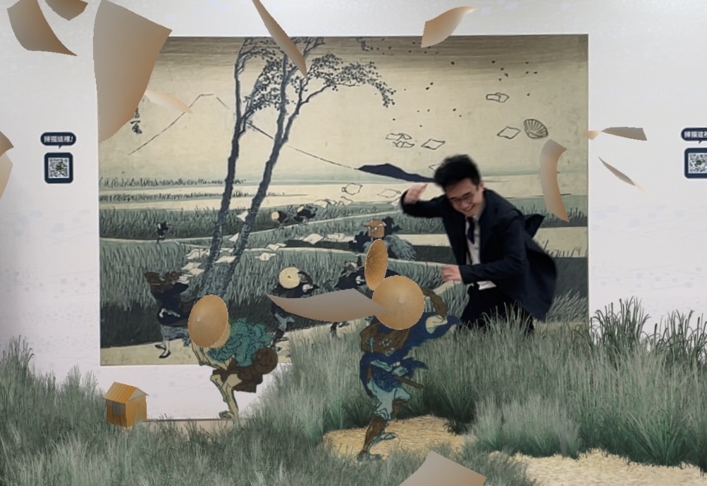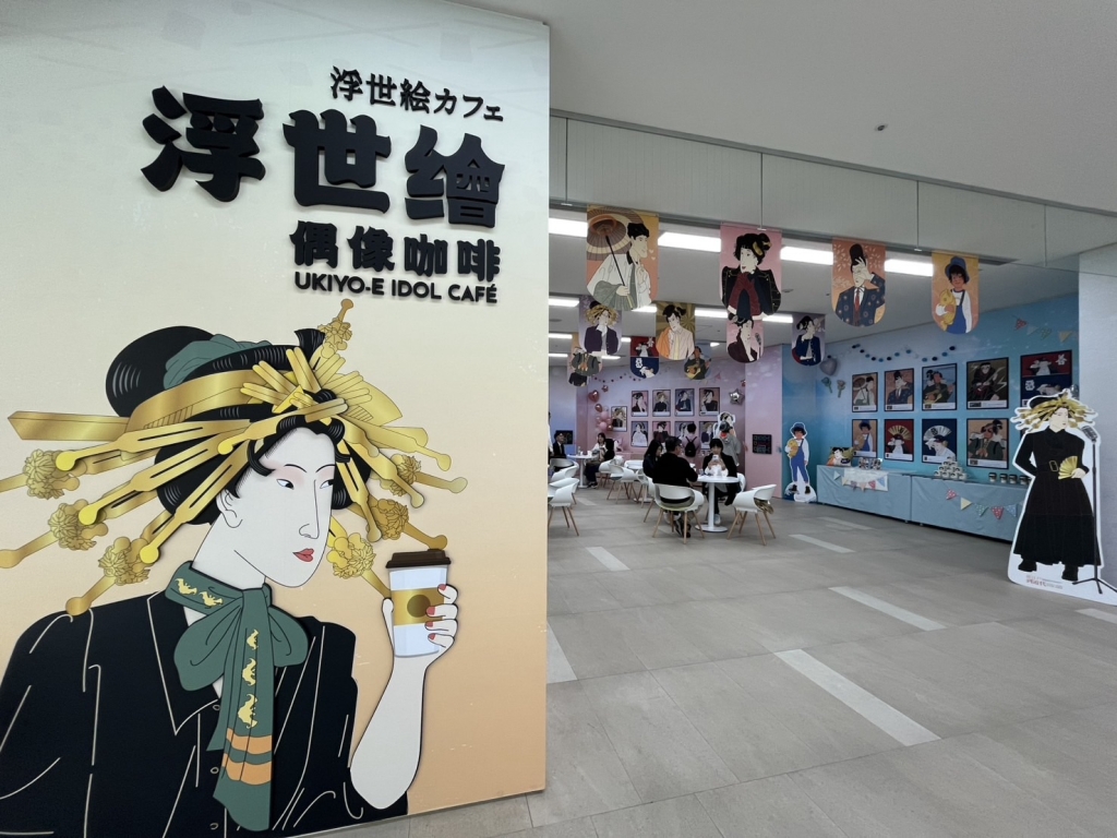 而記者會所在處,也是精心設計,呂慧甄說,為了該展特地改造的「浮世繪偶像咖啡廳」,現場也設置AR互動區,由逢甲大學鄭月妹教授與何羽凡設計師製作。一、二樓展場內也規劃主視覺拍照區、東海道53驛站地圖、多媒體互動區,以及版印展示區等,相當豐富精彩。一樓文創商品區則推出多款周邊商品,希望拉近民眾與浮世繪的距離。