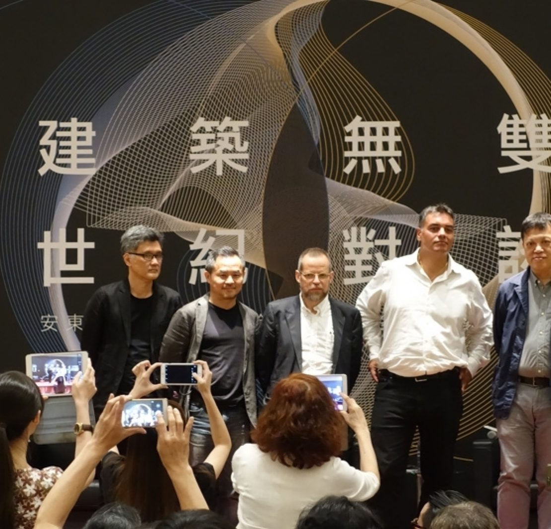 第二場由Zaha Hadid建築師事務所副董事Cristiano Ceccato主講,分享北京銀河SOHO、北京新機場以及台灣新北淡江大橋等案例之建築工法,擁抱參數化主義的Zaha Hadid實地運用抽象複雜的線條和曲面,解放人們對於建築思維的限制,創造一棟棟朝天際線橫衝直撞、宛如向外星人示威的龐大量體。Cristiano Ceccato也表示,古代的大教堂具有聚合人群的功能,人們在此享用聖餐,而此種愉快的體驗,也是Zaha Hadid團隊欲透過建築創造昇華的事,因此借助數位科技執行的幾何造型,與不同領域協作共創的作品,最終願景仍是打造一處使人們享受、徜徉其中的空間。最後一場座談,由成功大學建築學系教授吳光庭、建築師郭英釗及何以立提問,從歷史視角與都市規畫角度,與Jordi Faulí和Cristiano Ceccato進行對談。