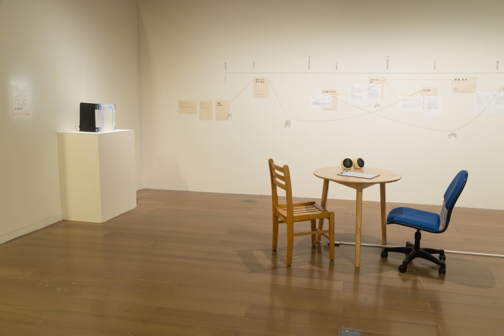 展覽「作為夥伴的我們」共展出六組計畫,分別於兩地呈現:其中四組於東海大學藝術中心展出,兩組於王道銀行總部藝廊展出。並且於展覽初期即邀請視覺設計師蔣婷雯全程參與,以此打破展覽慣見的分工慣性,也就是設計師往往在開展前匆匆介入,僅作為視覺包裝的技術角色,但在這次的計畫中,「設計」被視為展覽語言的一部分,詮釋這個計畫的策略與邏輯同步生成,而成為入展所見的第一「門面」。