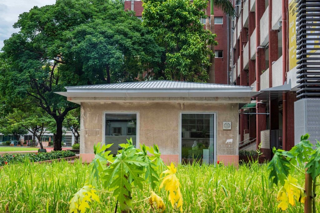 太平國小博物館以小巧結構,容納藝術、教育、歷史與當代精神,深植校園生活,亦延續地方文化脈絡。循博物館專屬通道而入,途徑由臺北市政府投入整建的停車場,即可見校園中由學生每日照料的田園,「綠色稻波」正呼應黃土水〈出生於臺灣〉一文中對故鄉風土的讚頌。如今已抽穗的稻波,倒映於由舊蒸飯室改建而成的「黃土水專室」落地窗,這棟一樓平房即為黃土水1920年東京美術學校畢業之作《少女》胸像的常設展間。展室牆面採圓潤泥牆設計,營造如「土角厝」般質感,室內設有相思木打造的學習平台,自然光從玉蘭花樹梢灑落,映照胸像細膩的造形與紋理,展現黃土水對藝術的執著與對生命的凝視。專室門前的幽香,則來自紀念黃土水遺孀廖秋桂所設置的桂花花台。