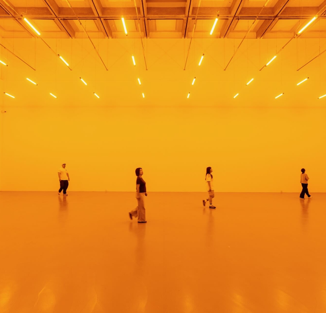 2003年,泰特現代美術館內升起一顆橘黃色的太陽,吸引兩百萬人次參觀,成為美術館的經典之作。該件正是冰島-丹麥藝術家奧拉弗・埃利亞松(Olafur Eliasson)的《天氣計畫》,他透過黃色燈光及鏡面創造出如同太陽般的沉浸氛圍,運用藝術探索氣候變遷的議題。