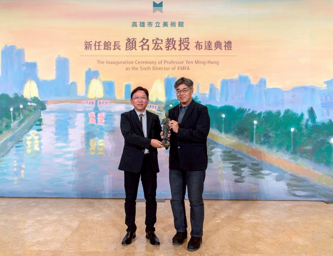 高雄市立美術館今(1)日舉行新任館長布達典禮,由國立臺中教育大學顏名宏教授接任第六任館長。在高雄市副市長李懷仁、文化部藝術發展司司長周雅菁、高雄市議員簡煥宗、高雄市政府文化局局長暨行政法人高雄市專業文化機構董事長王文翠,以及高美館歷任館長黃才郎、謝佩霓、李玉玲等各界嘉賓見證下,顏名宏館長自副市長手中接下象徵館務重責的黃土水《釋迦出山》銅像(複刻),正式就任。他提出「地域文化特質、美學扎根生活、藝術教育攜手、文化國際接軌」四大策略,盼打造高美館成為一座根植在地、鏈結亞太、推動南島文化對話的城市文化節點。