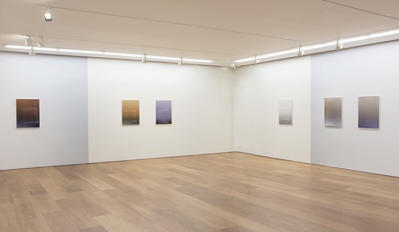 突破之舉,還出現在另一系列在美麗畫面上故意刮走一格格顏色的作品。藝術家在畫面中央利用刮刀或間尺(差別於原畫面用畫筆完成)留下痕跡的表現,為原本客觀精確的創作引入了一點主體性。鑽研單色美學多年的維米爾什坦承,過去創作上光亮並遊走於可見與不可見的冷靜特質,雖然始終維持著所追求的再現與理想世界的平衡,但有感於那過分完美的漸變色彩是以虛空繪出虛空,是零度空間般的時間,未能滿足他對存在的深刻反思。於是,透過這次繪製負影像的行為,除了更強化其作品特有的抽離氣質,以及增添不確定感外,他透露也想多一點自身的存在感。